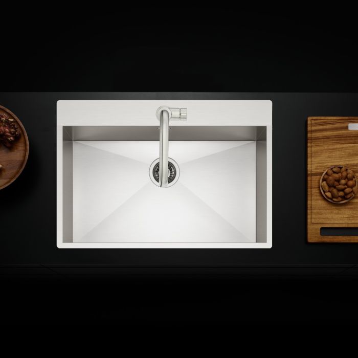 Ker je posoda izdelana z varjenjem, so linije robov izrazite in skladne s celotnim minimalističnim konceptom. Globina 200 mm prinaša več delovnega prostora pri ročnem pomivanju ter pri izpiranju večjih kosov sadja ali zelenjave. To kuhinjsko korito je zato primerno tako za manjše kuhinje, kjer želite eno večje korito, kot tudi za večje delovne površine, kjer je pomembna čista, enotna estetika.