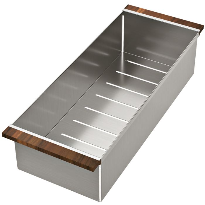 TASCA 280.YA je praktična drsna odcejalna posoda s perforiranim dnom, izdelana iz visoko kakovostnega nerjavečega jekla z lesenimi ročaji, primerna za pripravo ali odcejanje najrazličnejših vrst živil. Posoda je kompatibilna z vsemi TASCA koriti globine 400 mm