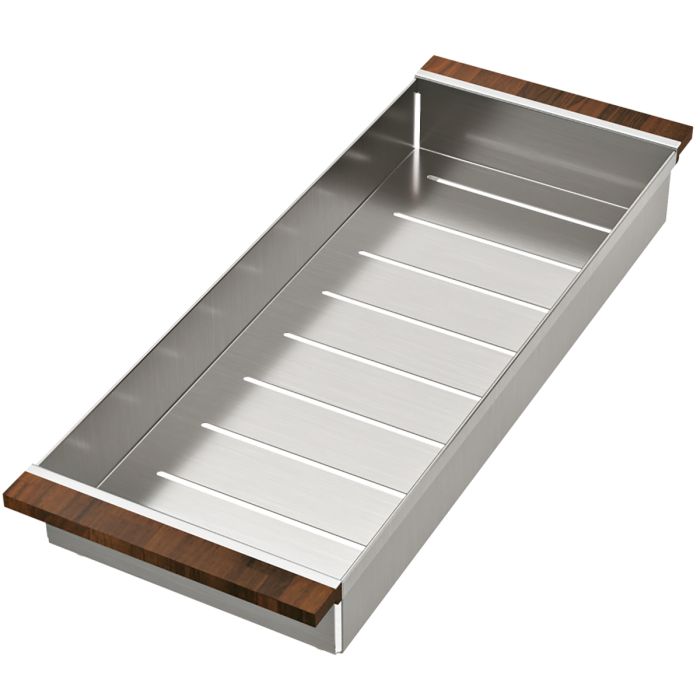TASCA 280.UA je visoko kakovosten perforiran drsni pladenj iz nerjavečega jekla z lesenimi ročaji, primeren za pripravo in odcejanje najrazličnejših vrst živil, izdelan iz kvalitetnega nerjavečega jekla. Pladenj je primeren za vsa TASCA korita globine 400 mm